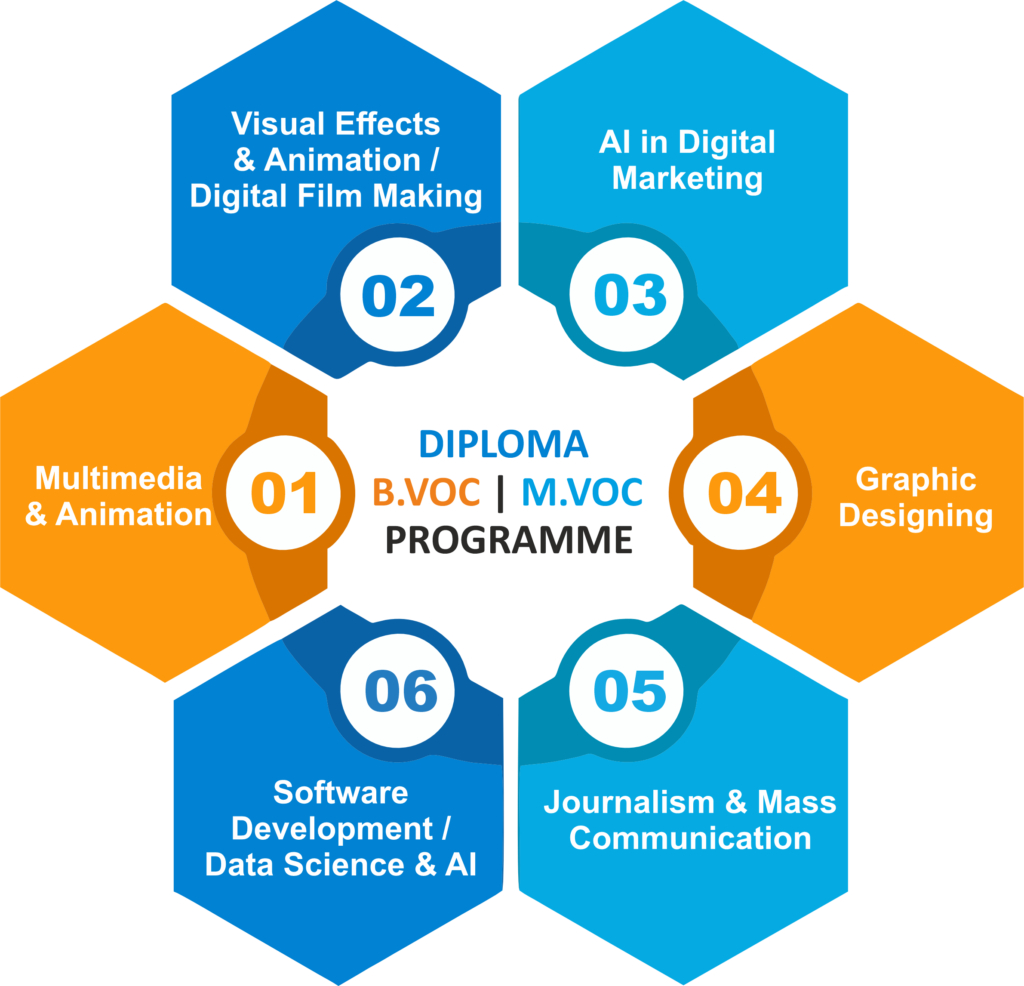 - Experiential Learning – The B.Voc program focuses on Practical and Skill based pedagogy